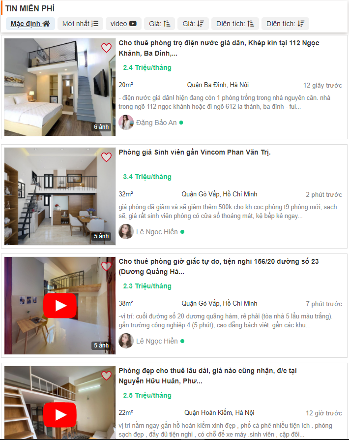 - Tin miễn phí: Là loại tin đăng bằng chữ màu đen và luôn nằm dưới các tin thường, Tin Vip và Tin Hot. Độ trôi tin của tin miễn phí rất nhanh