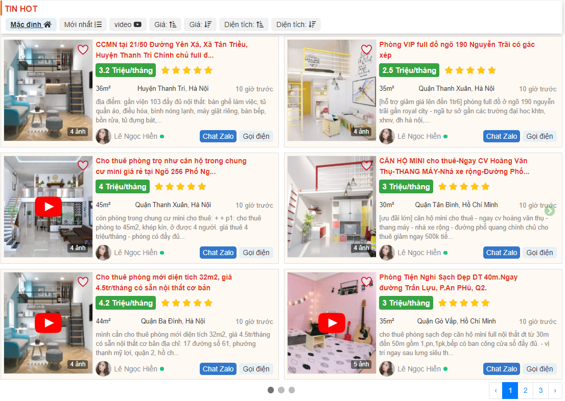 - Tin VIP: Là loại tin được đăng tiêu đề bằng chữ Màu cam tươi mới, nằm bên dưới Tin Hot và ở trên các Tin Thường.